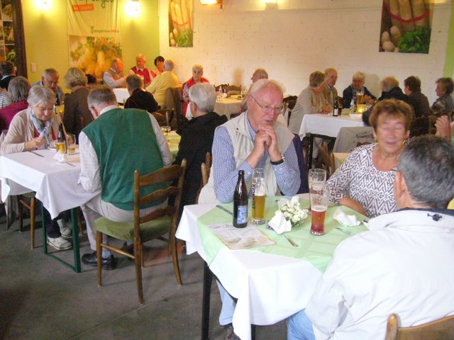 Danach gab es kein Halten mehr. Alle Teilnehmer gingen schnellen Schrittes Richtung Spargelscheune zum bestellten Essen „Spargel satt“. Dass komplette Essen, die Suppe, der Spargel und die verschiedenen Beilagen hatten wieder die hervorragende, gute Qualität. Von dem angebotenen Nachtisch mit frischen Erdbeeren wurde so rege Gebrauch gemacht, dass wir die Fahrt 2017 eigentlich auch Erdbeerfahrt nennen könnten. Anschließend wurde noch im Hofladen für zu Hause eingekauft.