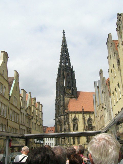 Der nächste Programmpunkt startete in Münster Mitte, Egidimarkt. Es wurde uns in einer einstündigen Rundfahrt in dem rot-goldenen Cabrio-Doppeldeckerbus, Schönes, Geschichtliches und Originelles der lebenswerten Stadt Münster gezeigt.